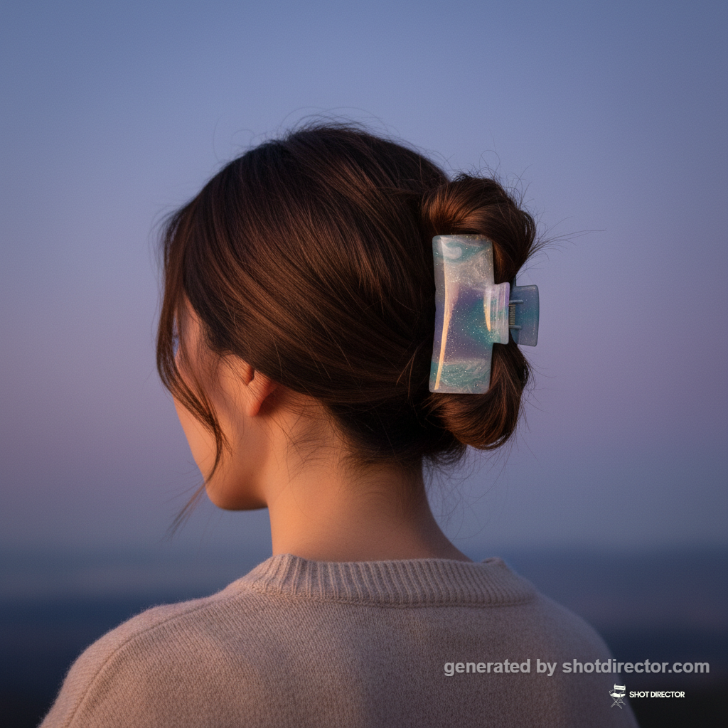 Warm, gentle lighting will enhance the clip's iridescent sparkle, creating a soft glow that complements the twilight theme